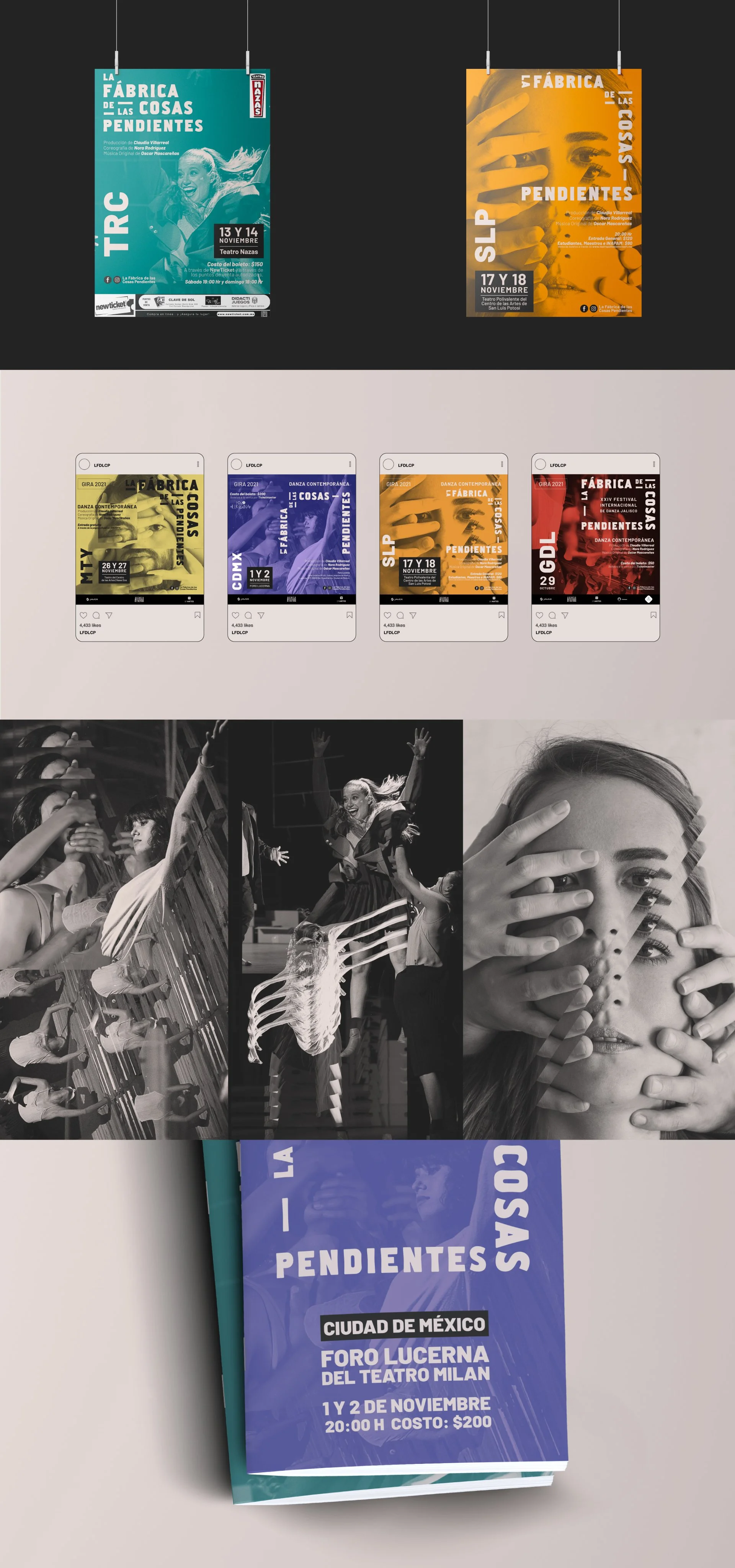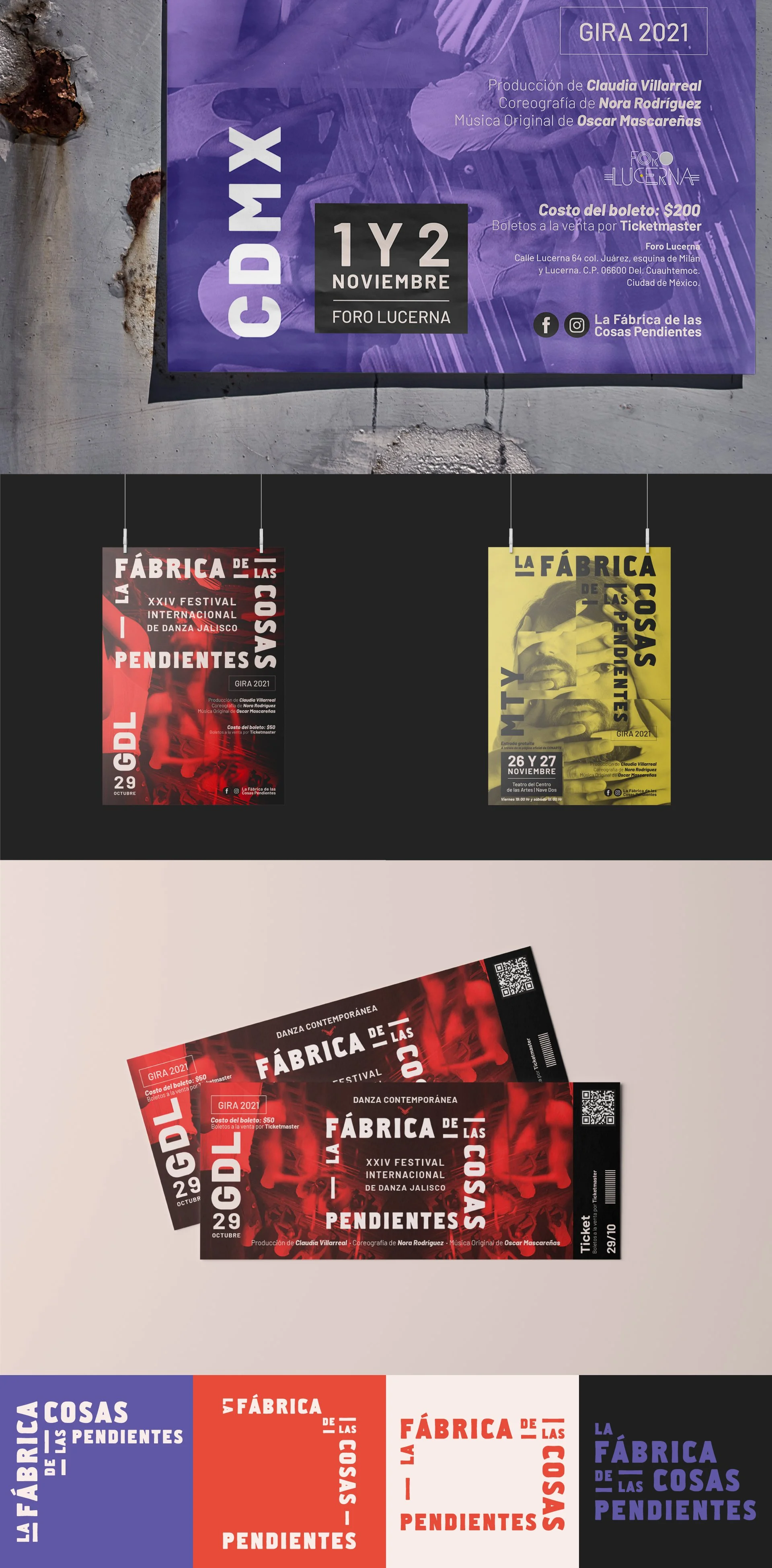 A guilty pleasure of ours, taking over a brand and bringing it to life. La Fabrica de las Cosas Pendientes gave us that, the chance to give the brand meaning, a distinctive design and a communication structure to last a lifetime and evolve on its own whenever necessary. We are undoubtedly pleased with the look and feel we produced for the advertising of their current performances and could not wait any longer to share it with you.